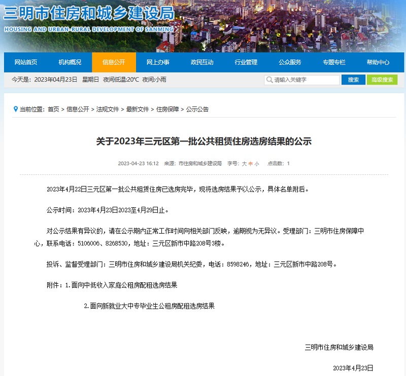 4月23日,我局已在市住建局门户网站公开选房结果,待公示期结束后,将安排办理入住手续。放弃选房的中低收入家庭,符合条件的家庭可继续申领住房租赁补贴,保障困难群众在市场承租适宜住房。